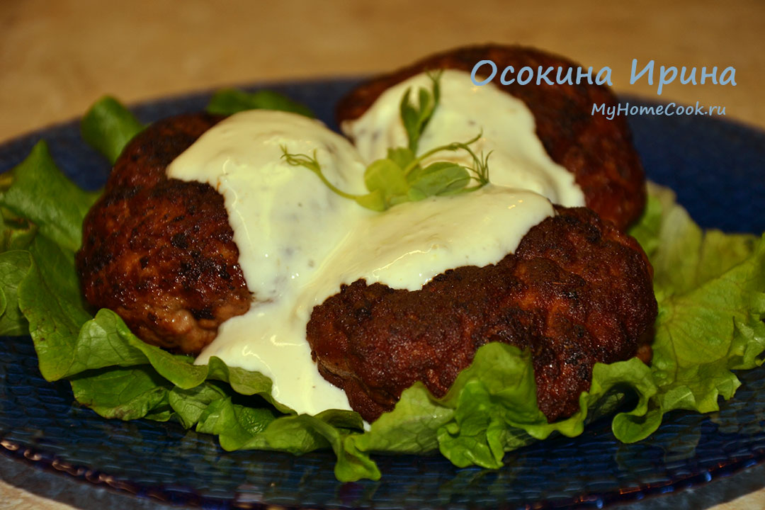 В чашу блендера вбила 1 яйцо, влила 100 мл сливок, добавила 2 ч.л. томатной пасты, 2 резаных зубчика чеснока, 1 ст.л. кукурузного крахмала, по 1/2 ч.л. сушеного орегано и хмели-сунели и слегка подвзбила, добавила 600 г фарша индейки и снова всё пробила до однородности, переложила массу в кулинарный пакет, срезала конец и с его помощью отсадила будущие котлетки на разогретую с топлёным сливочным маслом сковороду, после чего пожарила котлеты обычным способом. Для соуса смешала 3 ст.л. сметаны, измельчённый зубчик чеснока и 1/2 ч.л. столовой горчицы, присолила, приперчила и промешала. Готовые котлетки при подаче поливала соусом. Очень вкусные и очень сочные получились котлетки)