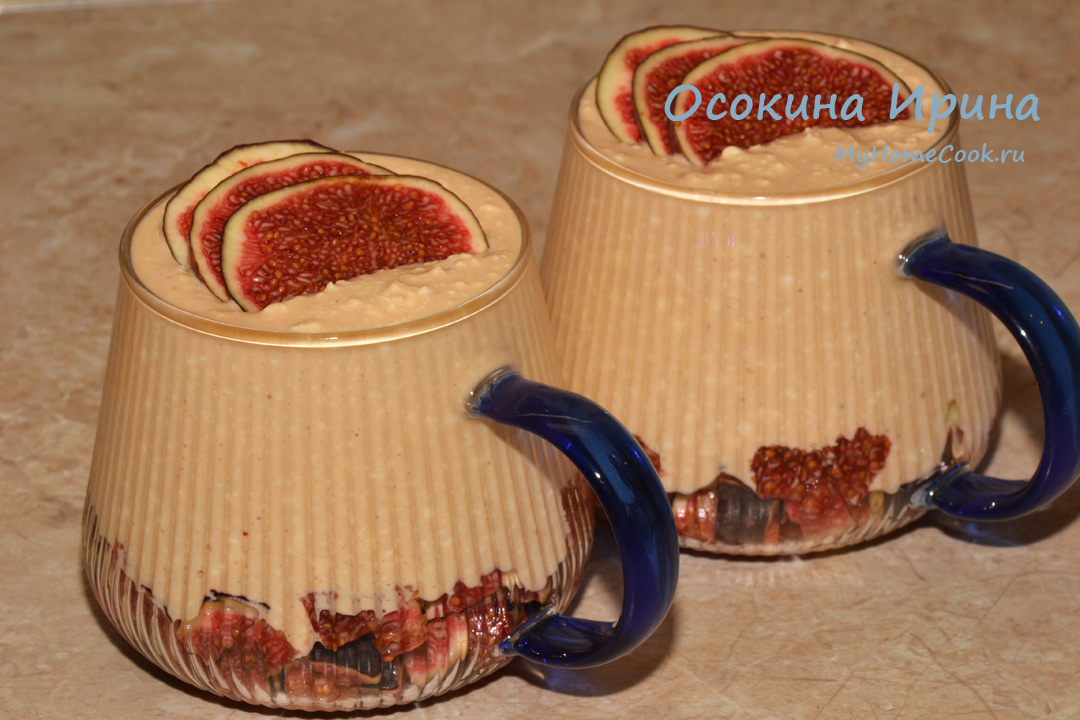Люблю простые десерты, которые можно собрать быстро и получить максимальное довольствие, не потратив на приготовление все силы) Пока есть сезонные фрукты и ягоды, стараюсь готовить десерты именно с ними. Сегодня во главе угла у нас инжир. В миске смешала 2 ст.л. сметаны и 3 ст.л. варёной сгущёнки, промешала до однородности, добавила 300 г зернённого творога и промешала. В сервировочные бокалы на дно уложила по 2 резаные ягоды инжира, затем творожную смесь, украсила кружочками инжира, настояла полчаса в холодильнике и подала. Просто, быстро и очень вкусно)