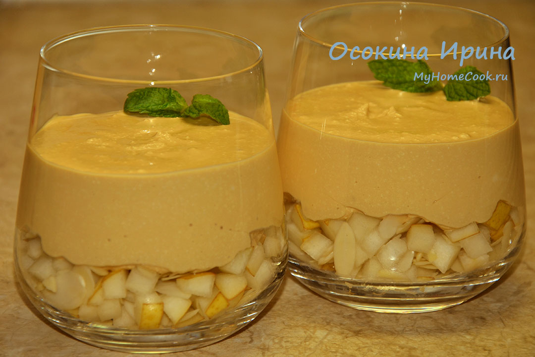 Творожный десерт с грушей