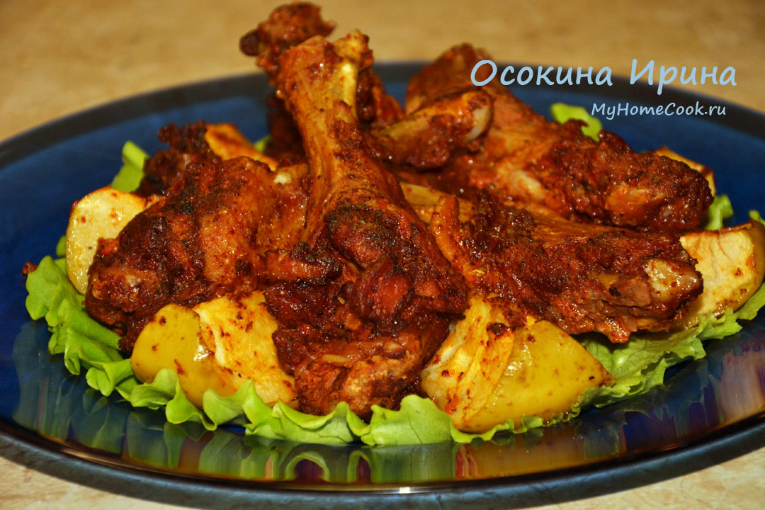 Запечённые утиные крылья с яблоками