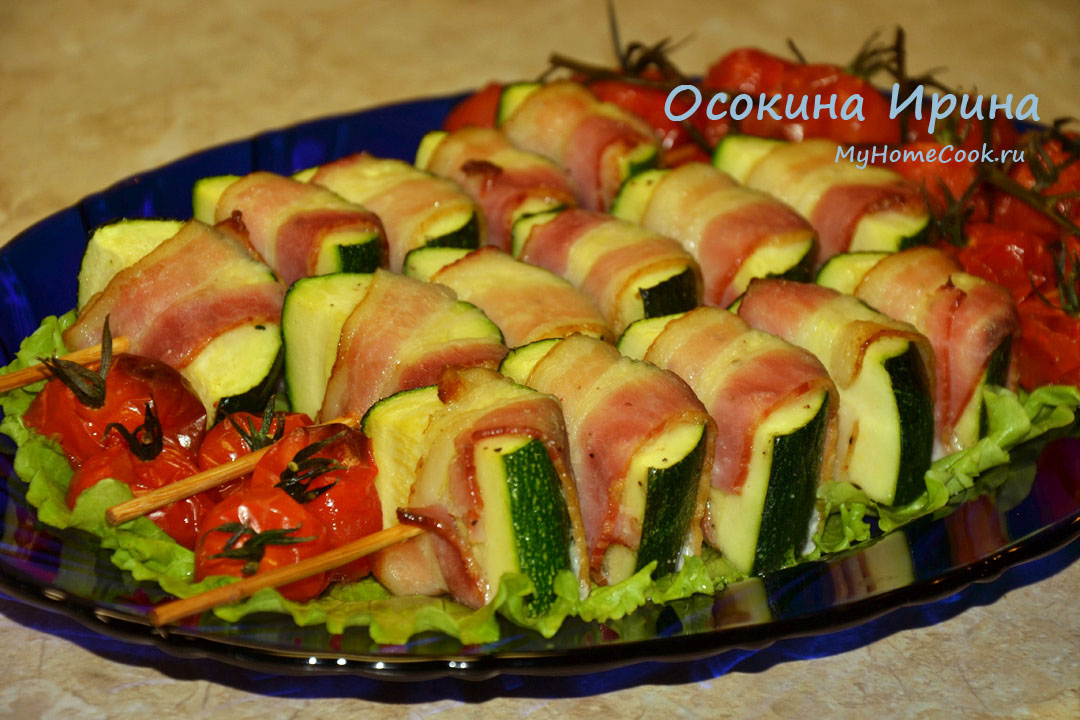 Шашлычки из цуккини в беконе