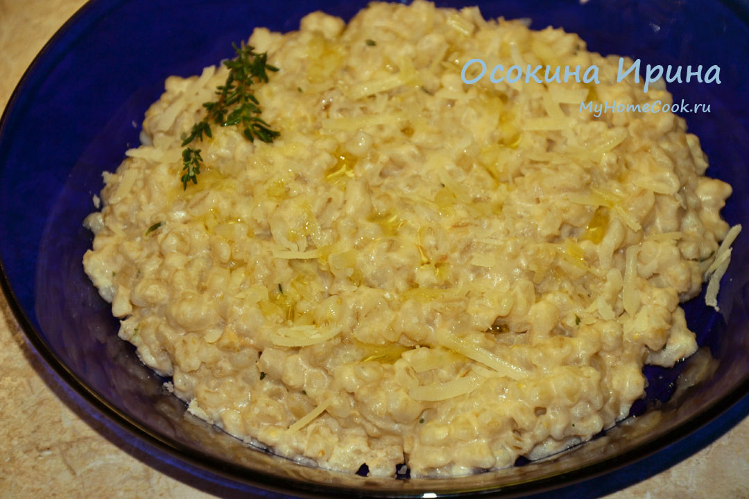 Перловка - недооценённая крупа, с ней у нас отношение как к солдатской каше, а между тем в других странах мира отношение к ней гораздо более деликатное. Сегодня окунёмся в итальянскую версию. В сотейник влила 1 стакан молока, присолила, добавила 1 ч.л. свежих листиков свежего тимьяна, довела молоко до кипения, добавила полтора стакана заранее отваренной перловки, снова довела молоко до кипения и распарила перловку под крышкой пока не впиталось молоко, добавила порциями 120 г тёртого на мелкой тёрке пармезана, помешивая, до его расплавления, сразу разложила перловку по тарелкам, ещё присыпала пармезаном, сбрызнула оливковым маслом и сразу подала. Шикарное по сочетанию вкусов и текстур блюдо! Будем повторять)