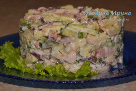 5 небольших тушек кальмара положила в кипящую подсоленную воду, через минуту сняла с огня, накрыла крышкой и...