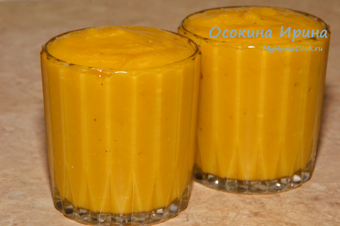 Смузи полезны для организма, так как обогащают его витаминами, минералами и клетчаткой, улучшая пищеварение, укрепляя иммунитет и способствуя контролю веса. А ещё это очень быстро и просто. Сегодня у меня тропическая тематика: в чашу блендера сложила резаную мякоть 1 крупного манго и 2 резаных банана, добавила 1/2 ч.л. куркумы и пробила хорошенько до гомогенного состояния, разложила (именно разложила - льётся довольно тяжело))) по бокалам и подала. Куркума во всех смыслах расцветила и украсила довольно привычное сочетание)