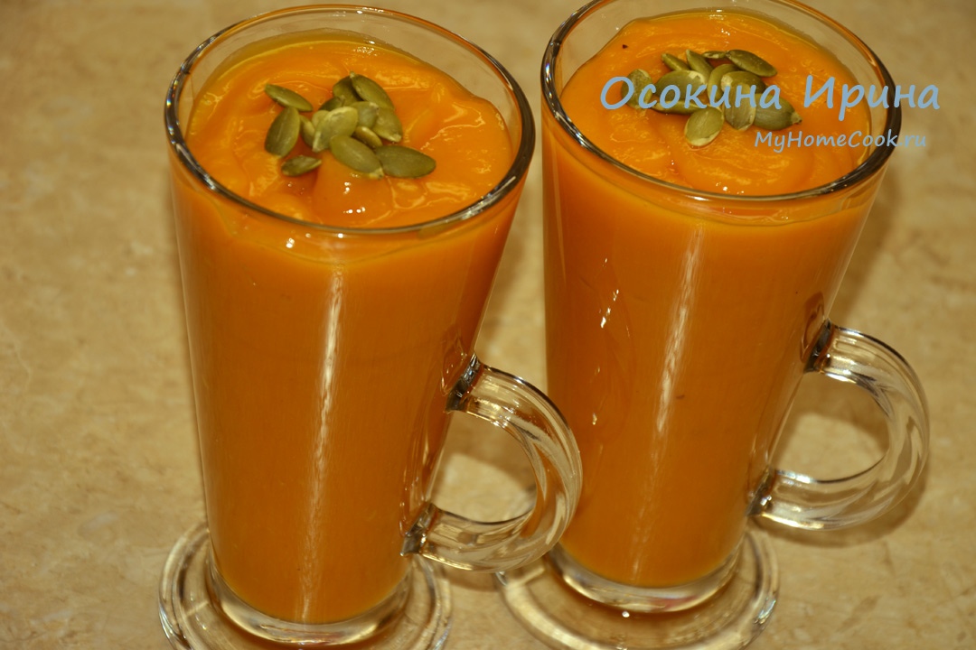 Тыква богата витаминами и минералами, укрепляет зрение, иммунитет и состояние кожи, так что кушать её нужно и полезно. На днях разрезали крупную тыкву, так что теперь с тыквой у нас буквально всё) Сегодня решила приготовить с ней ещё и смузи: 300 г тыквы порезала кубиком, отварила до мягкости в течение 15 минут, слила отвар, охладила тыкву и сложила в колбу блендера, добавила к ней 2 очищенные от кожицы и порезанные произвольно хурмы, влила свежевыжатый сок 1 апельсина и сок половины лимона и пробила всё хорошенько пару минут, настояла пару часов, разлила по бокалам, добавила тыквенные семечки и подала. Ооочеень вкусно и весьма полезно)