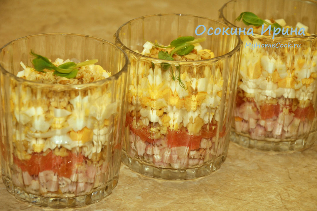 Слоёный салат с индейкой и апельсином