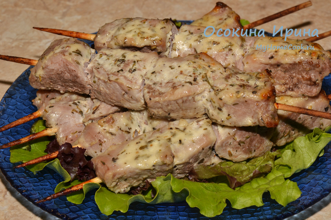Шашлычки в духовке - один из любимых зимних, да и не только способов приготовления мяса и птицы в нашей семье. Это не трудозатратно и неизменно вкусно. Сегодня такой вариант: в миске смешала 1 ст.л. сметаны, 1 ст.л. жидкого мёда, 1 ст.л. лимонного сока и 1/2 ч.л. смеси сушеных ароматных травок, посолила, поперчила и промешала, добавила 600 г свиной вырезки средне-крупными кусочками, промешала, оставила на час подмариноваться, затем нанизала на заранее замоченные в воде деревянные шпажки, переложила в форму и запекла в духовке, разогретой до 180 градусов, в течение 20 минут. Ооочень вкусно нам было)