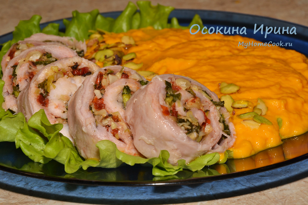 Р.S. Если рулеты в пищевой плёнке не вакуумировать, а обернуть в пекарскую бумагу, а затем в фольгу, то можно запечь их в духовке. Результат будет примерно таким же.