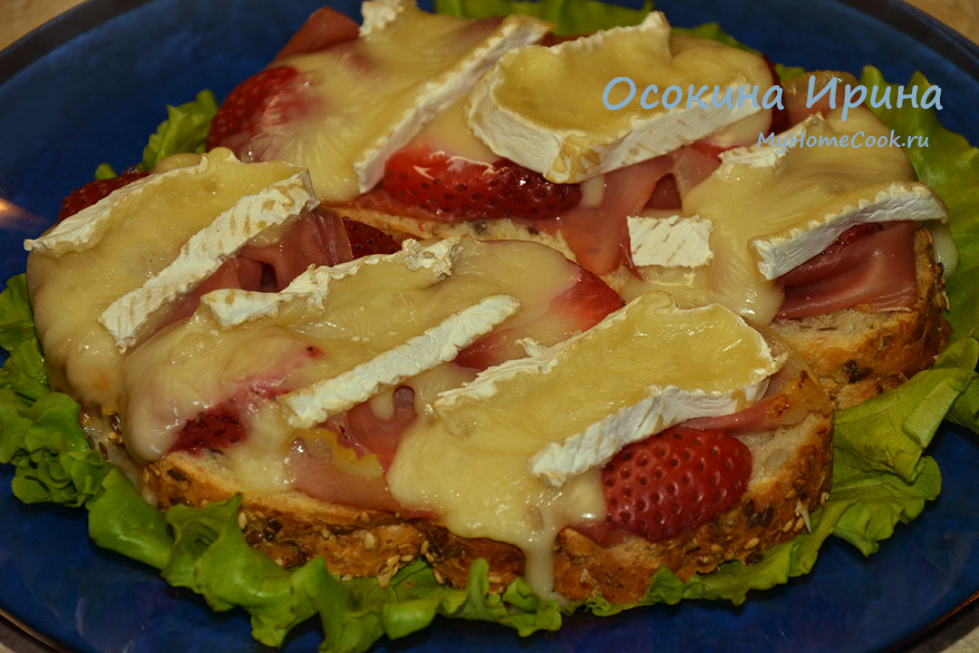 Горячие бутерброды с прошутто, клубникой и "Бри"