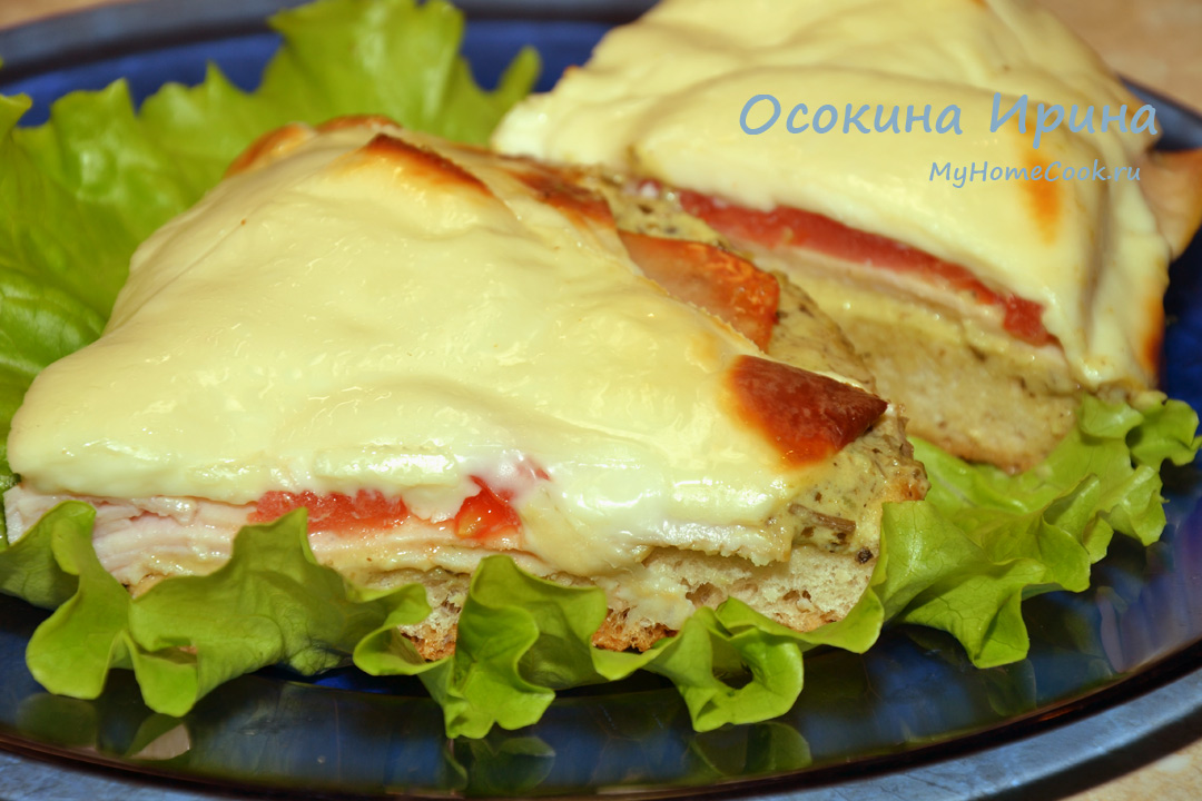 Готовую узбекскую лепёшку разрезала плашмя пополам и взяла только нижнюю часть - верхняя пойдёт на другое блюдо. В пиалке смешала 2 ст.л. натурального йогурта и 2 ст.л. готового соуса "Песто" и помешала до однородности, густо смазала этим лепёшку, поверх внахлёст уложила тонкие пластики ветчины, на них разложила кружочки очищенного от шкурки помидора, накрыла всё также внахлёст квадратами плавленого сыра "Моцарелла" для сэндвичей, переложила в форму для запекания, сбрызнула оливковым маслом и запекла в духовке, разогретой до 180 градусов, в течение 15 минут, достала форму, дала лепёшке немного "отдохнуть" под фольгой, порезала на сегменты и подала с какао. Просто, быстро, вкусно и сытненько - идеальный перекус)
