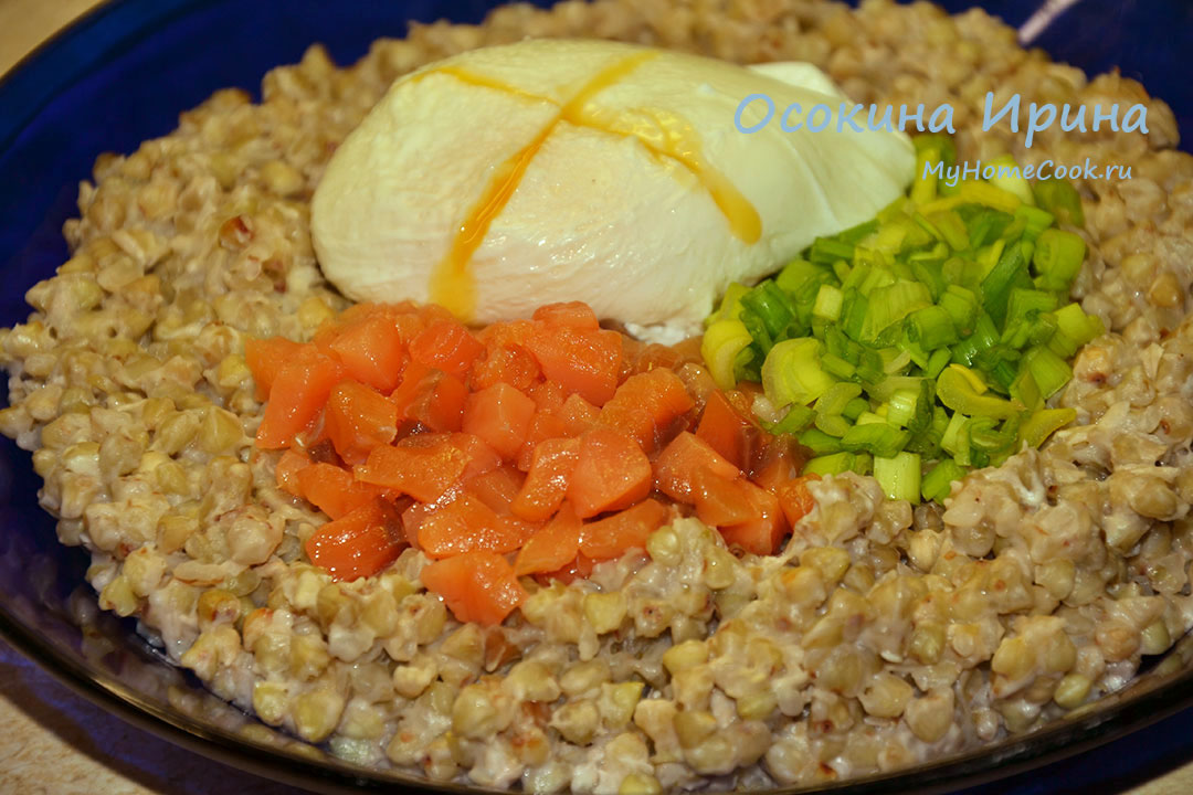 Чем ближе к весне, тем больше хочется завтраков не только вкусных и сытных, но и полезных. Сегодня такой вариант: вчера вечером 1 стакан зелёной гречки сложила в миску, залила холодной водой и оставила до утра, а сегодня промыла крупу и слила на сито. В ковшике довела до кипения 150 мл подсоленной воды, добавила подготовленную гречку, варила около 5 минут на маленьком огне до готовности и выпаривания влаги, добавила 2 ст.л. творожного сыра, хорошенько промешала, накрыла ковшик крышкой, сняла с огня, немного настояла, разложила по тарелкам, поверх выложила по 1 ст.л. слабосоленой форели мелким кубиком и резаного зелёного лука, добавила по 1 яйцу пашот и подала всё к завтраку. Ооочень вкусно получилось! Вкусно и полезно - чего ещё желать?)