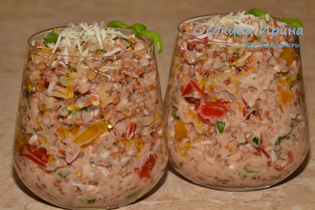 По примеру привычной ночной овсянки можно готовить и другие крупы, например, гречку. Причём у гречки можно использовать для этого как хлопья, так и целые ядра. Вчера в миску всыпала 1 стакан сухой гречки, залила 2 стаканами гречневого молока, промешала и оставила на ночь, сегодня в миску добавила по горсти резаных красных и жёлтых помидорок черри, горсть тёртого на тонкой (крупной, но плоской) тёрке пармезана и горсть резаных листьев зелёного базилика, посолила, поперчила, промешала, разложила по сервировочным бокалам, полила оливковым маслом, присыпала тёртым пармезаном и подала к завтраку. Ооочень вкусно нам было! А ещё это полезно и питательно)
